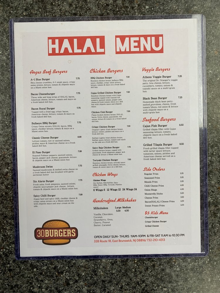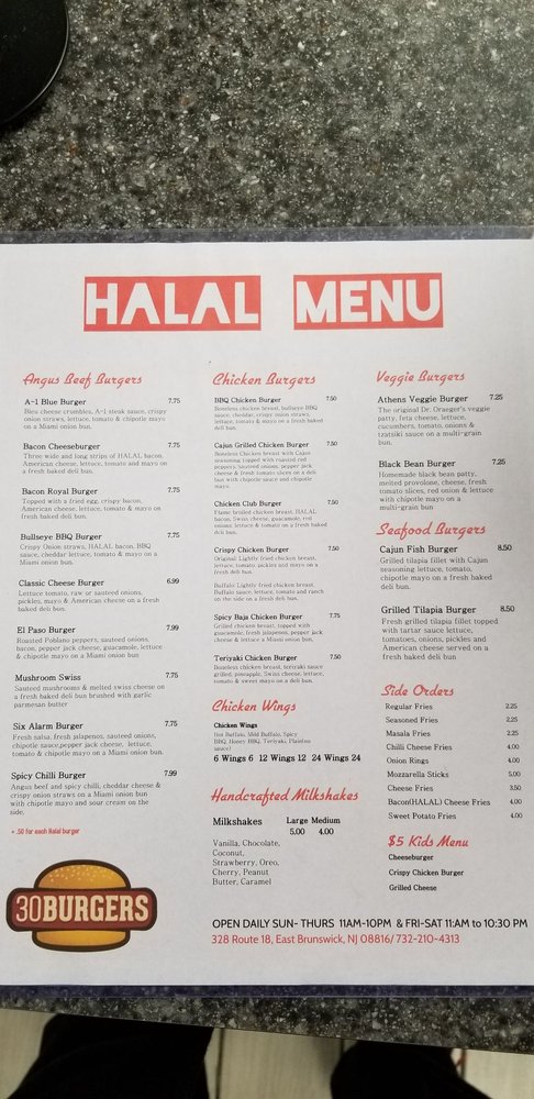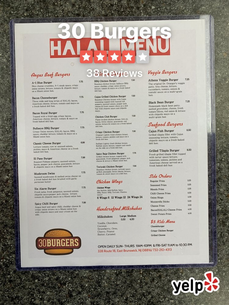 30 Burgers is a trendy and casual eatery located in East Brunswick, NJ, offering a diverse menu of chicken wings, halal options, and delicious burgers. With a range of vegan and vegetarian choices, this restaurant caters to all dietary preferences. The establishment provides various utilities such as delivery, takeout, and catering services, making it convenient for customers. The restaurant is wheelchair accessible, has outdoor seating, and offers private dining options. Additionally, patrons can enjoy Happy Hour specials, alcoholic beverages, and Wi-Fi connectivity. With its friendly waitstaff and cozy atmosphere, 30 Burgers is the perfect spot for groups, families, or a casual dinner. Whether you're craving a classic burger or looking to try something new, this restaurant has something for everyone.