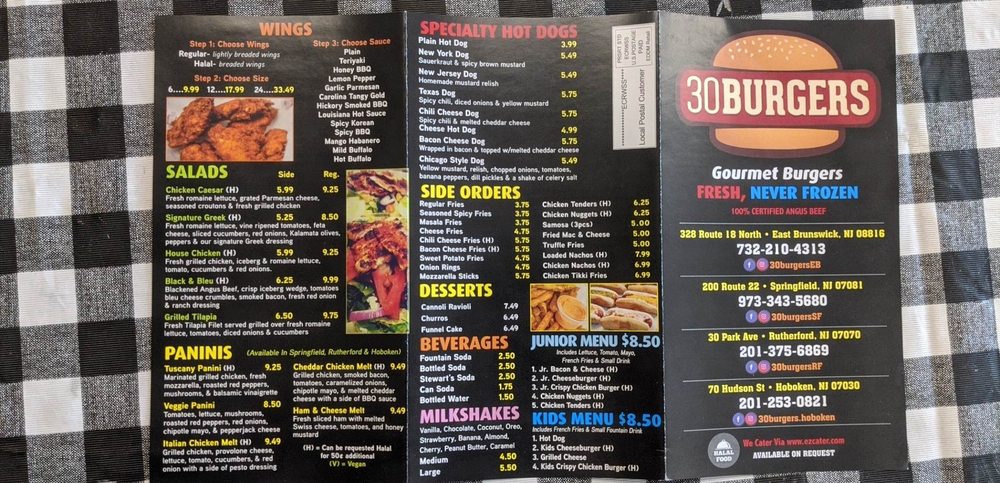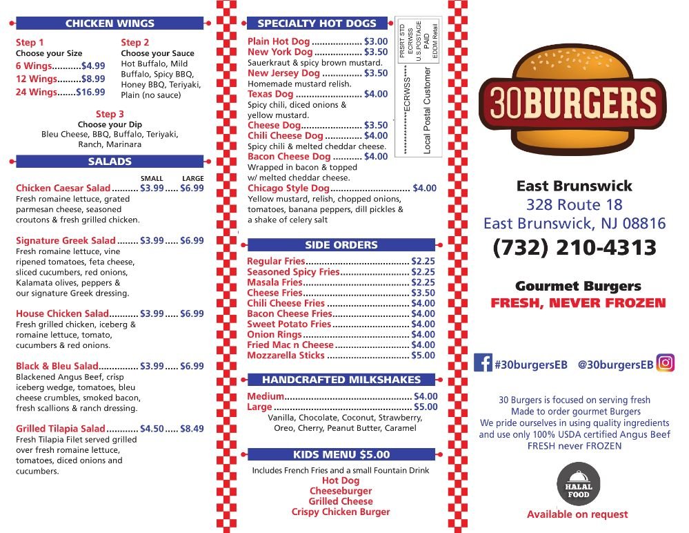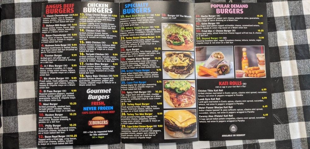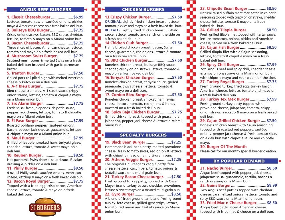 30 Burgers Menu