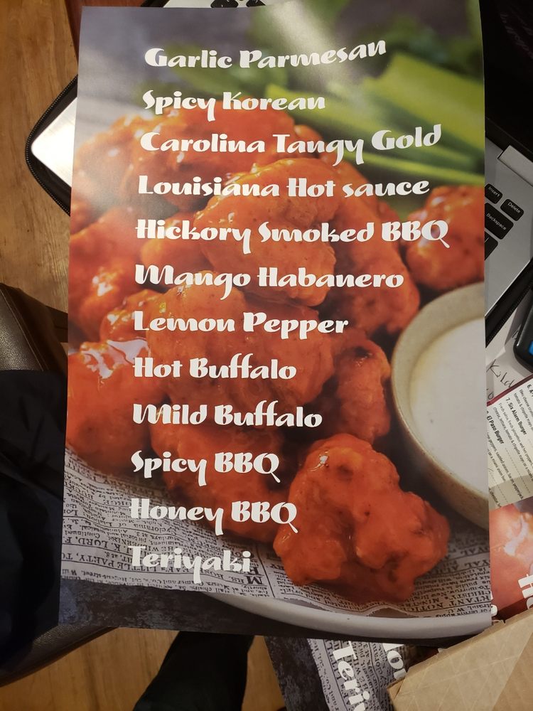Choose your Sauce: Hot Buffalo, Mild Buffalo, Spicy BBQ, Honey BBQ, Teriyaki, Plain (no sauce); Choose your Dip: Bleu Cheese, BBQ, Buffalo, Teriyaki, Ranch, Marinara
